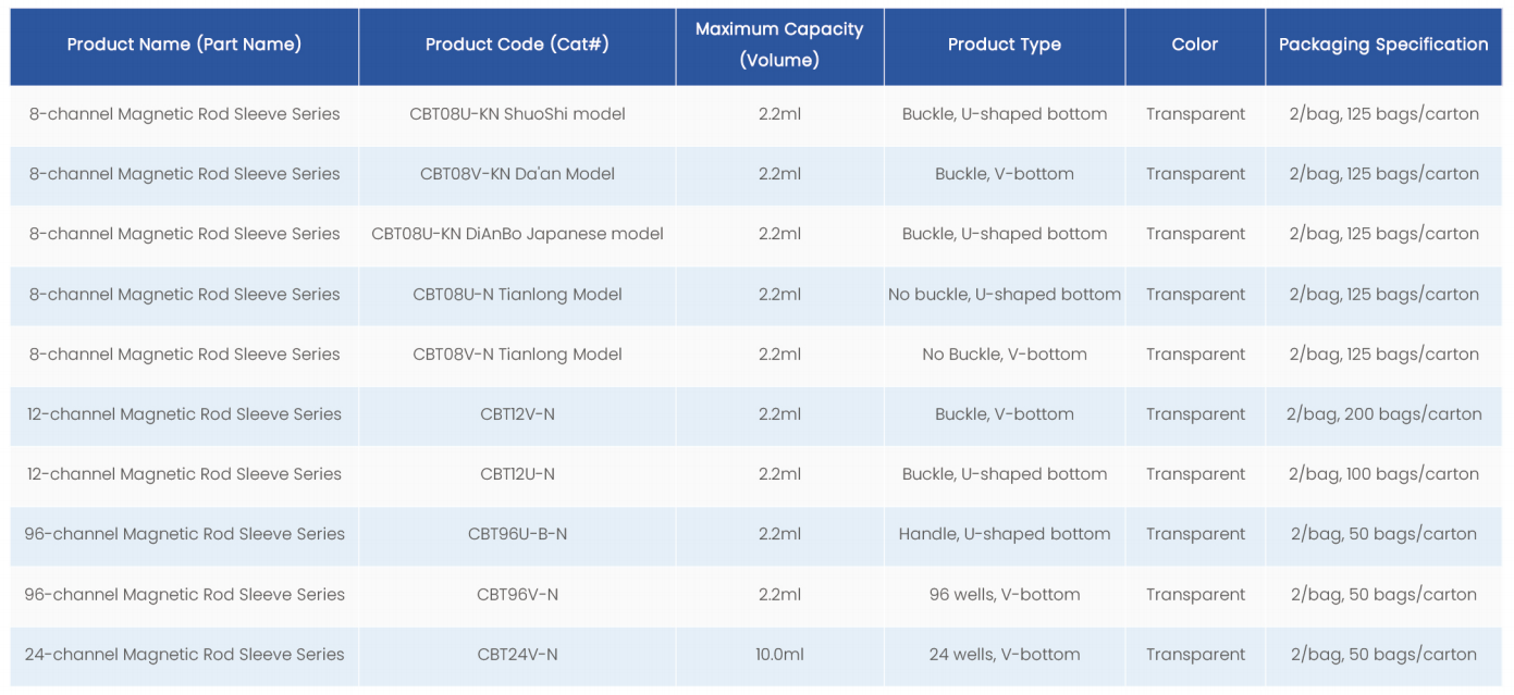 Available in various sizes and compatible with standard magnetic rods and laboratory instruments, magnetic rod sleevesorovide a consistent and secure interface between the magnetic rod and the beads. Their durable construction ensures reliableperformance during repeated use in high-throughput and routine laboratory applications.
