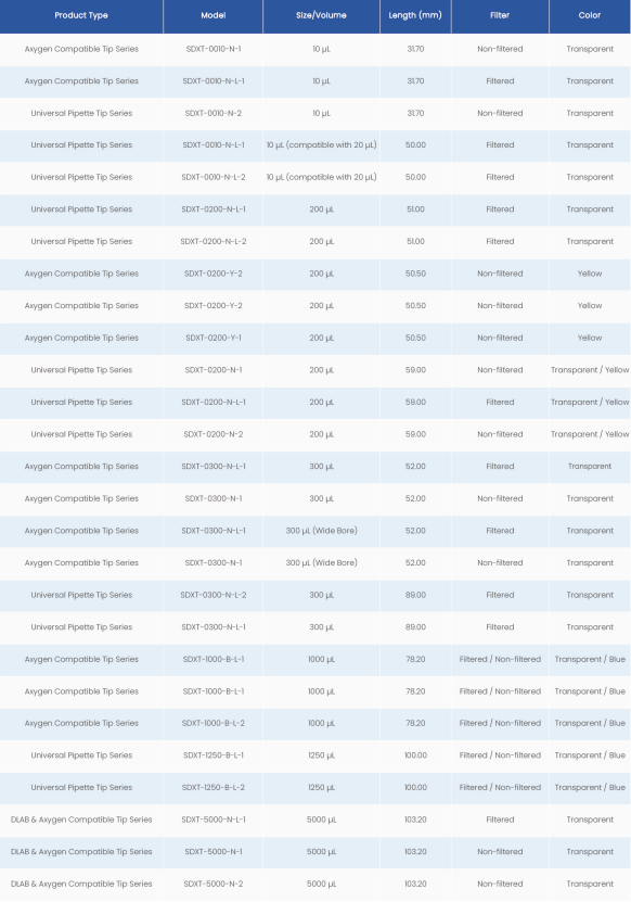 Fach tip features clear graduation markings and color coded rings for easy voume identification Bult in fiter cartridges prevent backfiow and cross -contamination which is especially important when handling mutiple samples or performing sensitive tests, such as COVID-19 diagnostics.